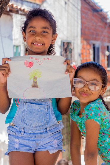 Na oficina de lambe-lambe misturamos sorriso com cores para construir um espaço onde nossos afetos abraçam a rua. A partir de desenhos que surgem dos sentidos brincantes, intervimos nas paredes do beco do Pombal.